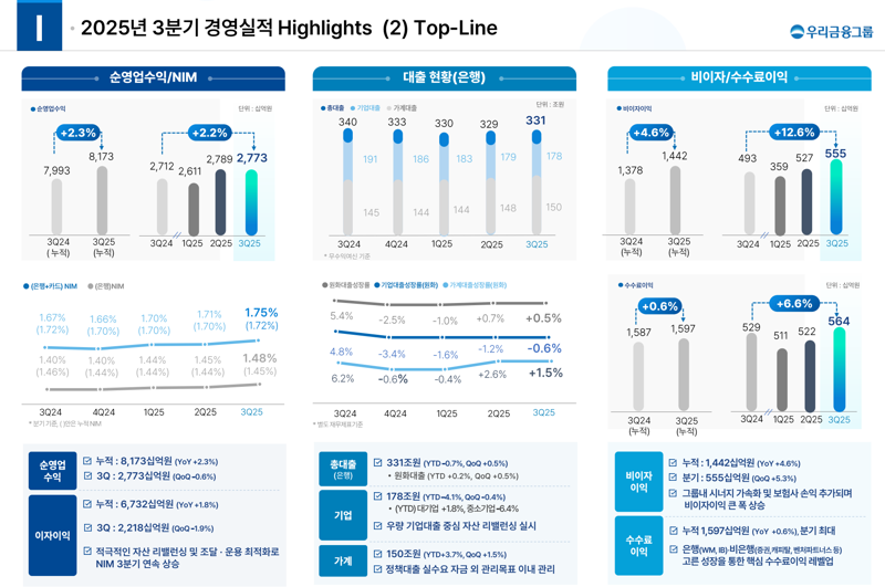우리금융그룹 관계자는 "우리금융지주의 주가는 연초 대비 약 80% 상승했다. 동양·ABL생명과 우리투자증권 인수로 완성된 종합금융그룹의 이익 기여도가 본격화되면서 추가 상승 여력이 있을 것"이라며 "보통주자본(CET1)비율이 안정적으로 개선되고 있어 총주주환원율도 확대될 수 있을 것으로 전망된다"고 말했다