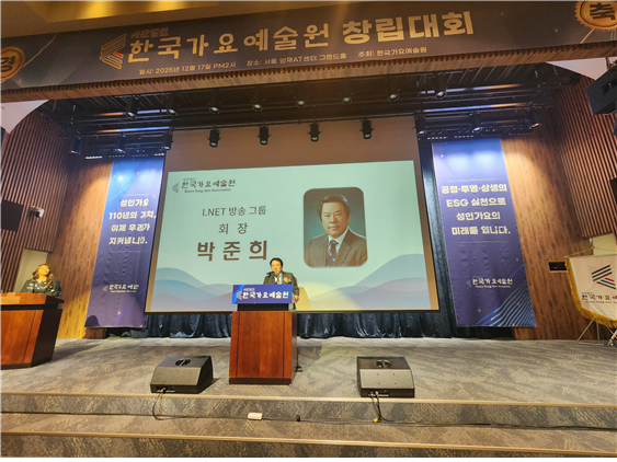 박 회장은 이날 축사를 통해 "가수는 무대 위에서 노래를 부르지만 그 노래가 진정한 힘을 얻는 것은 바로 국민들의 마음과 맞닿아 있기 때문"이라면서 "노래가 사람의 삶을 위로하고 기쁨을 나누며 세대를 이어주는 다리"라고 강조했다.
