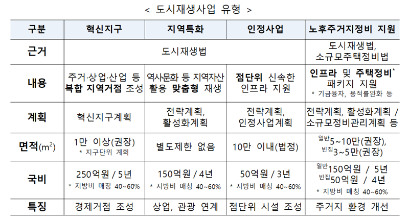 쇠퇴지역 458만㎡ 재생·일자리 8611개 창출 기대 목표