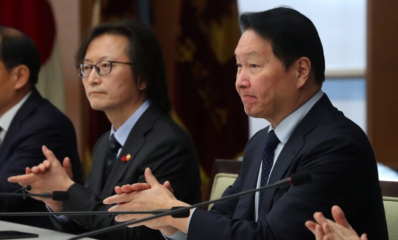 한편 최 회장은 이날 앞서 열린 '배경훈 부총리 겸 과학기술정보통신부 장관 초청 최고경영자(CEO) 조찬 간담회'에서도 "매 5년간 1%씩 저희의 성장률이 내려오며 지금은 성장률이 0.9%대까지 내려왔는데 이 상태로 5년이 지나면 잠재 성장률이 마이너스가 된다. 한번 마이너스로 떨어지고 나면 그 다음부터는 리소스를 구하기 어렵다"고 문제 의식을 드러냈다. 이어 "앞으로의 5년 동안 성장률을 끌어올리기 위한 새로운 대한민국의 전략이 필요하다고 생각한다"고 강조했다.