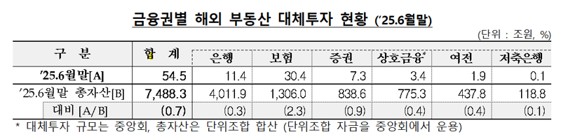 금감원 '6월 말 금융사 해외 부동산 대체투자 현황'