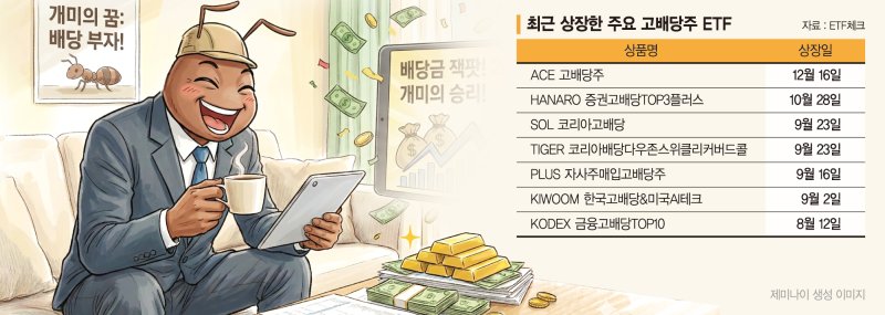 18일 금융투자업계에 따르면 올해 국내 자산운용사가 출시한 국내 고배당 ETF는 총 10종에 달한다. 전체 33종 가운데 3분의 1이 올 한 해 동안 새로 상장한 셈이다.