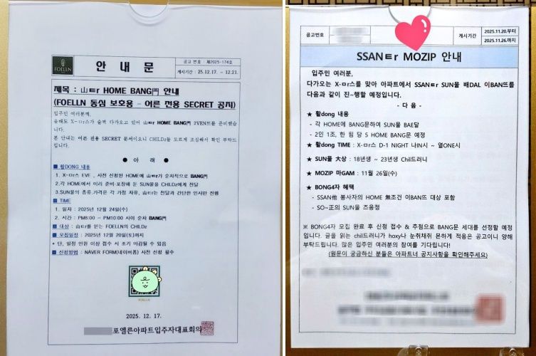 본문에는 "올해도 X-ㅁr스가 슬쩍 다가오고 있어 山ㅌr HOME BANG門 2VEN트를 준비했다"며 "본 안내는 어른 전용 SECRET 문서이오니 CHILDz들 모르게 조심해서 확인 부탁드린다"고 적혀 있다.