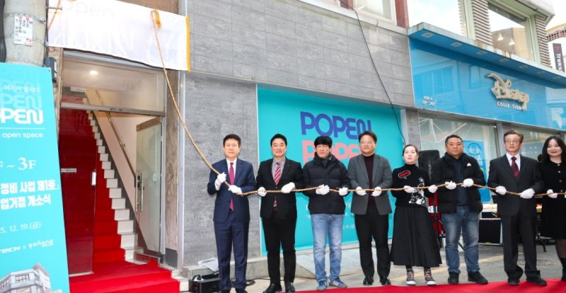 [포항=뉴시스]송종욱 기자 = 포항시는 19일 북구 상원동 중앙상가 실개천 거리에서 빈 건축물을 리모델링해 조성한 '청년 창업 거점 POPEN 개소식'을 개최했다.