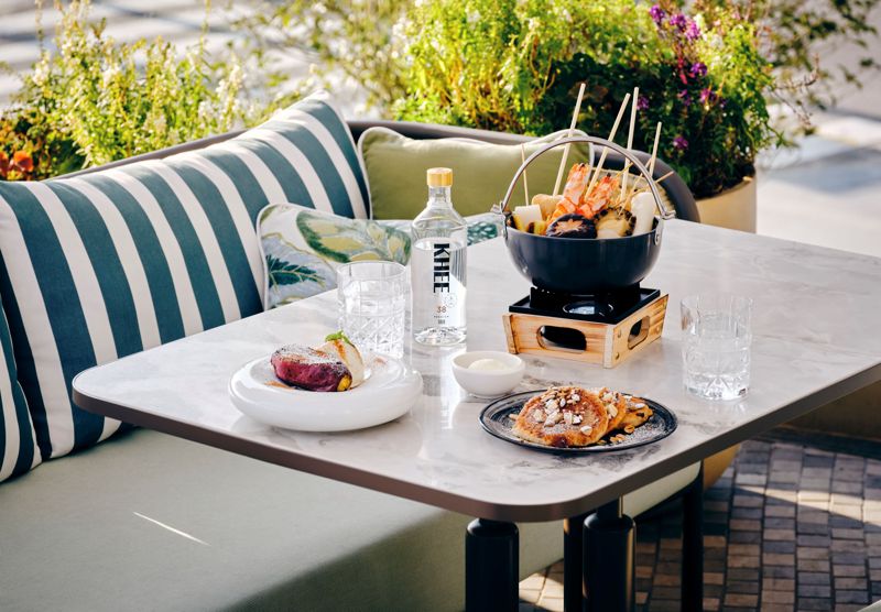 세트 메뉴는 부산 해산물 어묵탕, 프리미엄 증류주 ‘KHEE 소주’ 1병으로 구성되며, 디저트로는 겨울철 대표 간식인 ‘군고구마 브륄레’ 또는 ‘테라스 호떡 레이어’ 중 한 가지를 선택해 즐길 수 있다.