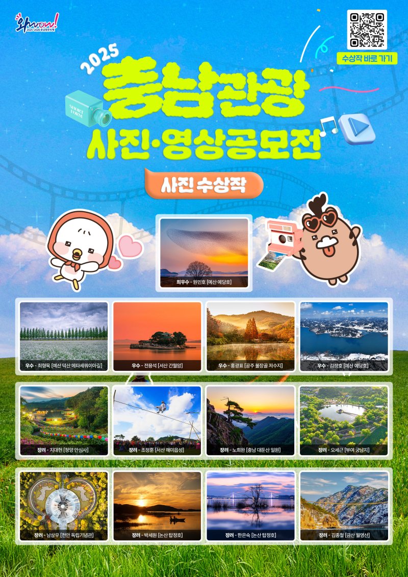 작품들은 최우수상부터 입선작까지 도내 풍경과 문화, 관광 명소를 표현했다. 최우수작은 예산 예당호의 가창오리 군무를 담은 작품이다.
