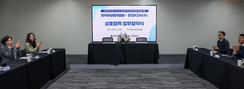 [파이낸셜뉴스] 한전KDN은 한국여성벤처협회와 지난 19일 서울 강남구 소재 한국여성벤처협회 회의실에서 ‘여성벤처기업의 지속가능 성장과 디지털 전환(DX)·인공지능 전환(AX) 지원을 위한 업무협약’을 체결했다고 22일 밝혔다.
