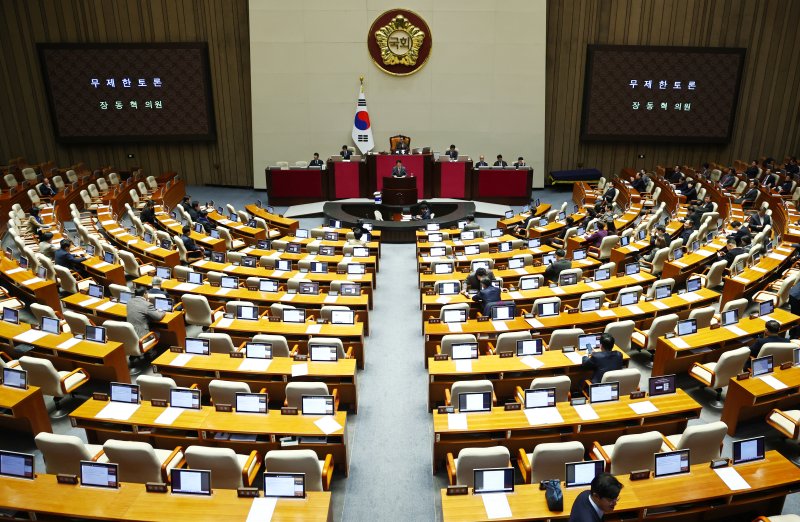 최 원내수석대변인은 "몇 차례의 졸속 수정으로 위헌성을 해소했다고 주장하지만, 실체는 달라진 것이 없다"며 "이는 위헌 논란을 덮기 위한 얄팍한 꼼수이자, 헌법 질서를 정면으로 위협하는 입법 폭주에 불과하다"고 주장했다.