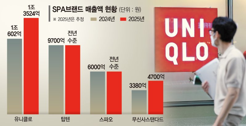 국내 SPA 브랜드 1위인 유니클로 역시 두자릿수 성장을 기록했다. 한국에서 유니클로를 운영하는 에프알엘코리아는 2025년 회계연도(지난해 9월~올해 9월) 기준 매출액 1조3524억원을 기록했다. 직전 회계연도보다 27.5% 증가했다. 노재팬 여파로 6000억원대까지 떨어졌던 매출액이 완전히 회복하면서 2년 연속 1조원 매출을 달성했다.