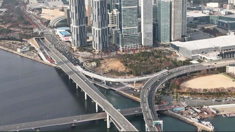 부산시는 이날 오후 3시 해운대구 올림픽공원에서 '광안대교 접속도로 연결공사' 개통식을 개최했다. 시는 해운대구 신시가지와 센텀시티를 연결하기 위해 2017년부터 2025년까지 총사업비 412억원을 투입해 공사를 했다.