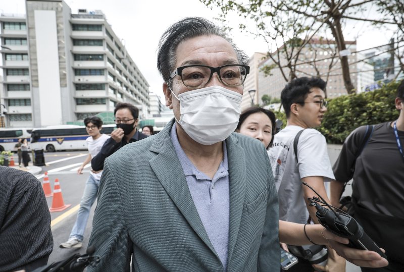 건진법사 전성배씨가 지난 8월 서울 종로구 KT광화문빌딩 웨스트에 마련된 김건희 특검 사무실에 출석하고 있다. 사진=뉴시스