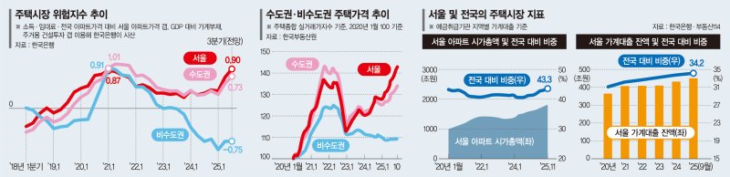 23일 한국은행이 발표한 '2025년 하반기 금융안정보고서'에 따르면 지난 11월 말 기준 서울 아파트 시가총액이 전국에서 차지하는 비중은 43.3%로 나타났다. 전고점인 2020년 8월(43.2%)을 웃도는 수치다.