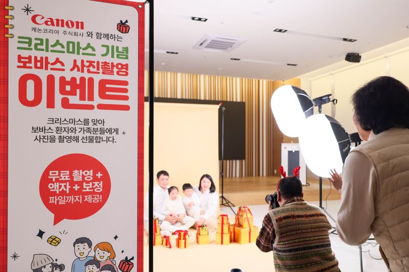 캐논코리아는 전문 사진작가를 초청해 60여명의 환아와 가족을 대상으로 촬영을 지원했다. 크리스마스 트리와 다양한 소품으로 꾸며진 스튜디오를 배경으로 촬영됐으며, 리터칭 과정을 거친 후 액자에 담아 전달할 예정이다.