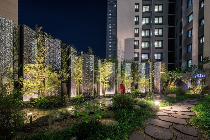 은상은 '힐스테이트 소사역' 조경 공간이 받았다. 옥상 전체를 연결한 목재 데크 산책로와 생태연못, 건천을 통해 빗물 순환과 저장을 유도하고, 수경시설과 미스트 포그 장치를 적용해 도시 열섬 완화 효과를 높인 점이 평가됐다.