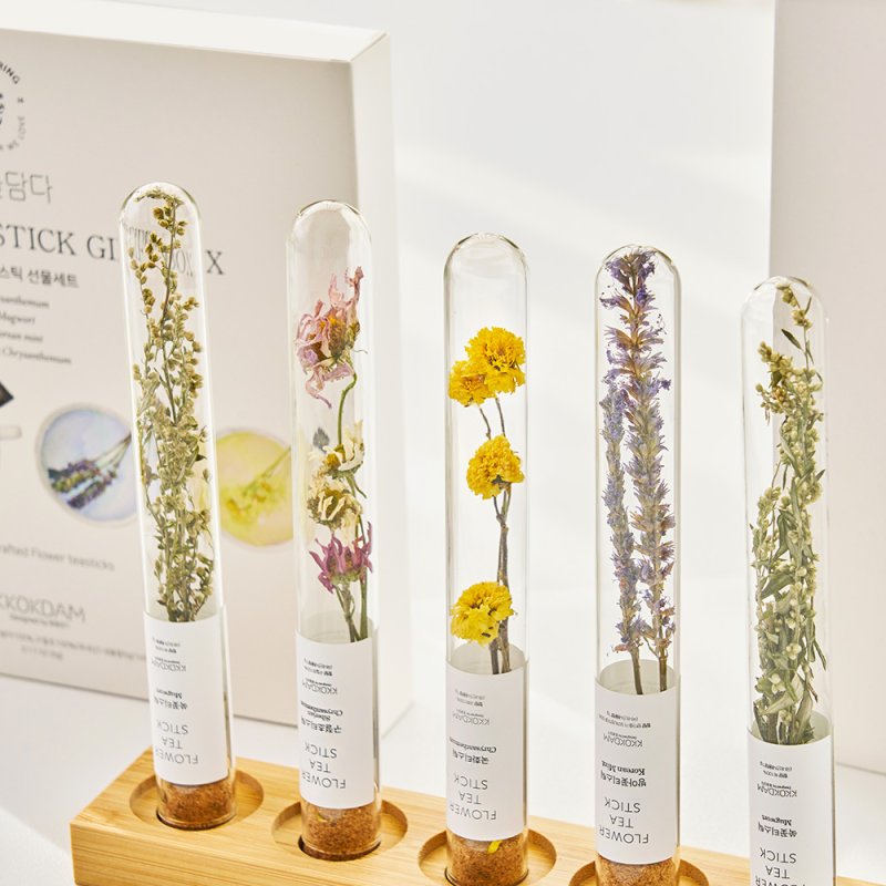 대표 제품은 꽃차스틱이다. 디자인 특허 등록을 완료한 유일무이한 형태의 꽃차로 꽃이 줄기째 피어난 상태로 건조해 가공한 베스트셀링 제품이다.