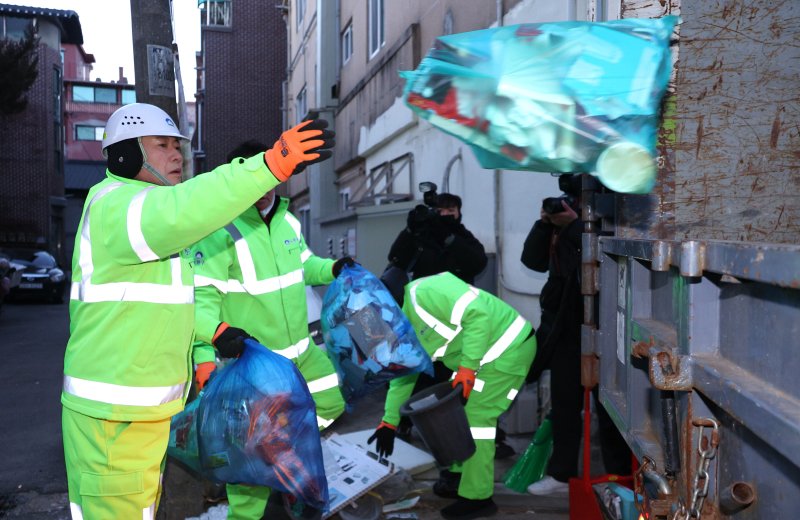 장 대표는 26일 서울 도봉구 일대에서 생활폐기물 상차 및 청소에 나섰다.