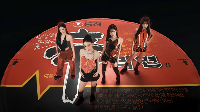 배경음악부터 안무까지 모든 게 라면과 연결돼 있다. 일단 1997년 발표된 영국 팝그룹 스파이스 걸스의 히트곡 ‘Spice Up Your Life’를 에스파가 리메이크한 걸 배경음악으로 사용했다.