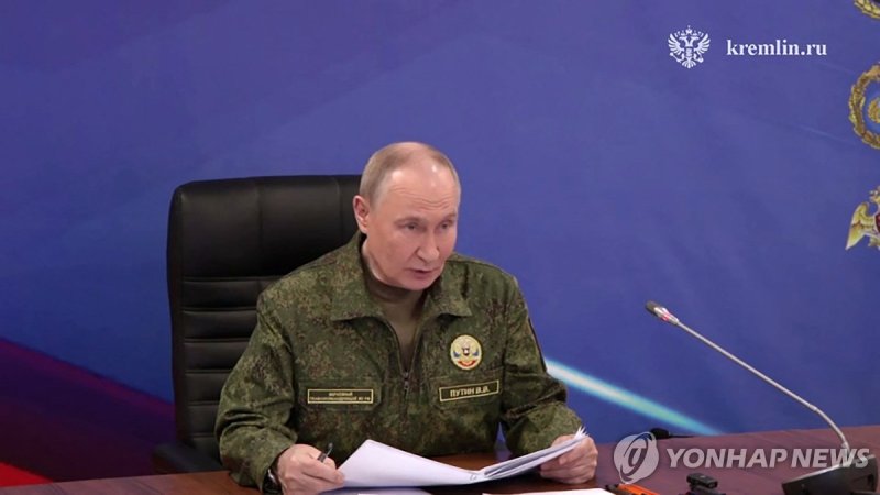 타스, 리아노보스티 통신에 따르면 푸틴 대통령은 이날 군복을 입고 합동군 사령부 중 한 곳을 방문해 우크라이나 '특별군사작전' 상황의 보고를 듣고 회의를 진행했다.