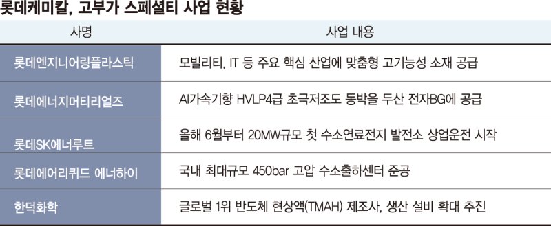 롯데케미칼은 이번 석유화학산업 구조 개편과 함께 고부가 및 친환경 사업 중심으로 포트폴리오 전환을 속도감 있게 추진 중이다.