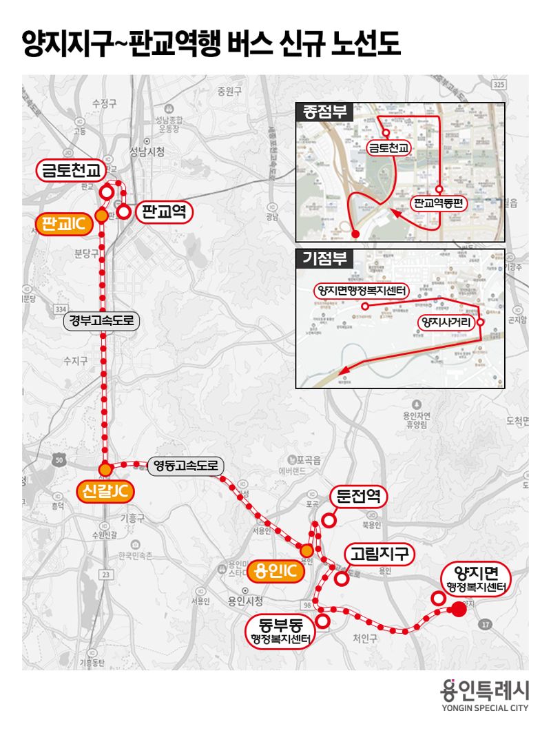 버스는 △양지면 행정복지센터 △양지사거리 △동부동 행정복지센터 △서울병원 △고림고·유림2동 △유림동·방축 △둔전역·인정멜로디아파트 △금토천교 △판교역동편 등 정류소에 정차할 예정이다.