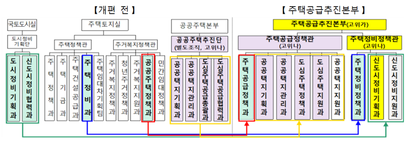 그동안 국토부 내에 주택공급 전담조직으로 공공주택추진단을 운영해왔으나, 별도조직으로 운영되면서 조직의 안정성, 성과 관리 측면에서 한계가 있었다. 또 재건축·노후도시 정비 등 주택공급 관련 기능이 다른 조직에 분산돼 있었다.