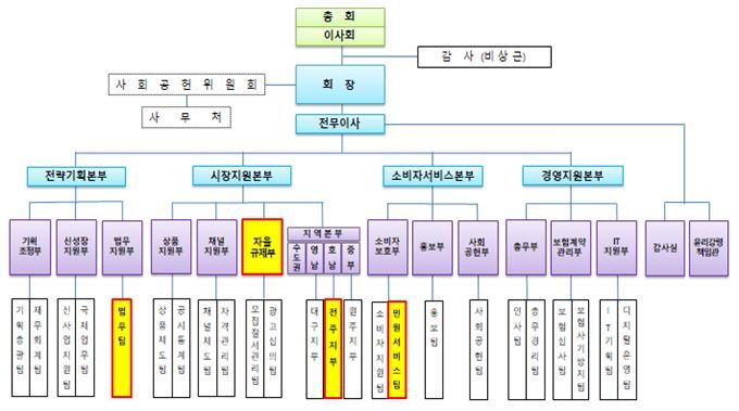 이번 개편의 핵심은 자율규제 기능 강화와 민원 대응 체계 고도화다. 협회는 보험상품 불완전판매 방지와 보험광고 사전심의 강화를 위해 기존 모집질서관리팀과 광고심의팀을 재편, 이를 통합한 ‘자율규제부’를 신설한다. 이를 통해 업계 전반의 자율규제 역량을 한층 끌어올린다는 방침이다.