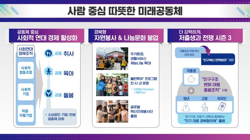 경북이 주도하는 저출생과 전쟁은 더욱 강력해진 시즌3로 확대한다. 저출생에 고령화, 청년, 외국인 정책을 종합해 미래 인구구조 변화에 선제적으로 대비해 나갈 계획이다.