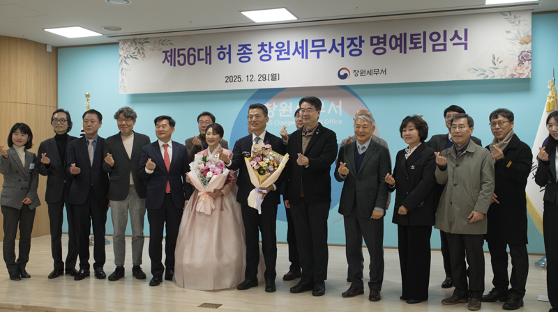 창원세무서 직원들은 허종 서장의 그동안의 활동을 담은 동영상 상영과 송별사 낭독으로 떠나보내는 아쉬움을 달래고, 정성스럽게 준비한 기념품과 꽃다발을 증정하며 명예로운 퇴임을 축하했다.