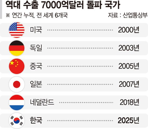 지난 1948년 정부수립 이후 첫 수출에 나선 지 77년 만의 기록으로 평가된다. 1948년 수출액 1900만달러에서 3만6000배 이상 성장했으며, 연평균 증가율은 14.6%에 달한다.