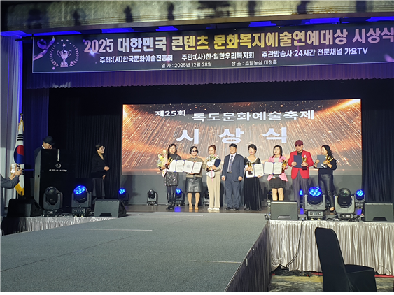 [파이낸셜뉴스] 아이넷방송그룹은 박준희 회장이 지난 28일 부산 동래구 호텔농심 대청홀에서 열린 '제25회 독도문화예술축제 및 2025 대한민국 콘텐츠 문화복지예술연예대상' 시상식에서 교육부분 대상을 수상했다고 29일 밝혔다.