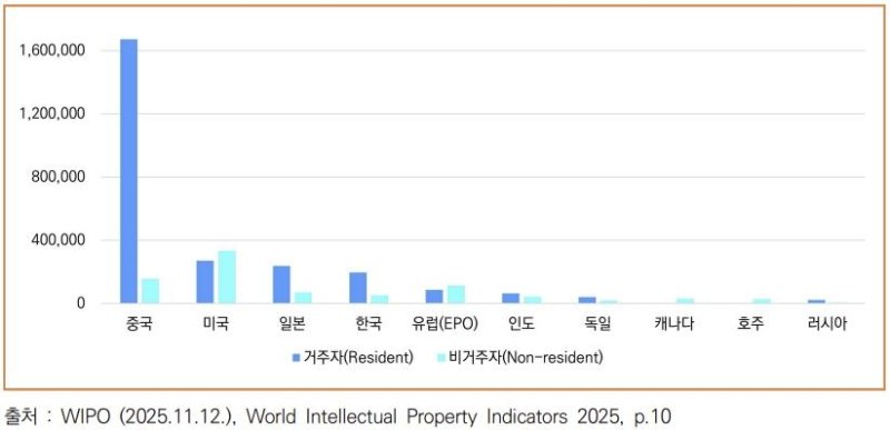 30일 한국과학기술기획평가원(KISTEP) '과학기술&ICT 정책·기술 동향'에 따르면 세계지식재산기구(WIPO)는 최근 전 세계 주요 국가/지역 특허청에 등록된 특허 등 지식재산권 현황을 집계해 분석한 '2025년 세계 지식재산 지표' 보고서를 발표했다.