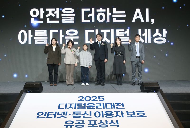 방송미디어통신위원회와 한국지능정보원은 30일 서울에서 '2025 디지털윤리대전 및 인터넷·통신 이용자 보호 유공 포상 수여식'을 열고 올 한 해 건전한 디지털 이용문화 조성 및 확산 등에 기여한 공로자를 발굴 및 시상했다. 올해로 16회를 맞이한 디지털윤리대전은 '디지털윤리 창작콘텐츠 공모전' 시상과 건전한 디지털윤리 문화 조성, 인터넷·통신 이용자 보호에 기여한 개인과 단체를 격려하는 자리로 수상자와 가족, 지인 등 약 150명이 참석했다.