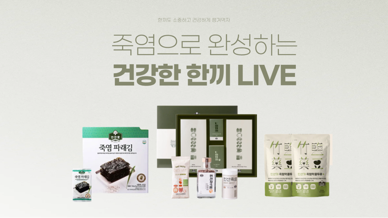 라이브를 통해 판매하는 주요 제품은 △죽염담은 넛츠세트 △죽염파래김 △죽염약콩두유 플러스 등 건강한 식재료를 일상에서 간편하게 즐길 수 있는 제품들로 구성했다.