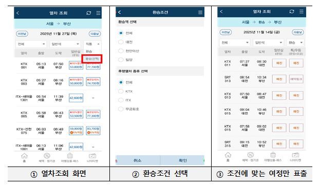 그간에는 출발역과 도착역만 직접 지정하고, 환승역과 열차는 운행시간표를 기반으로 자동으로 추천됐지만, 이번 서비스 도입으로 상황에 맞는 여정 설계가 가능해져 여행 편의가 향상 됐다.