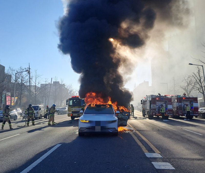 30일 전북소방본부에 따르면 이날 오전 9시46분께 전주시 완산구 삼천동 백제대로에서 주행 중이던 전기차에 화재가 발생했다.