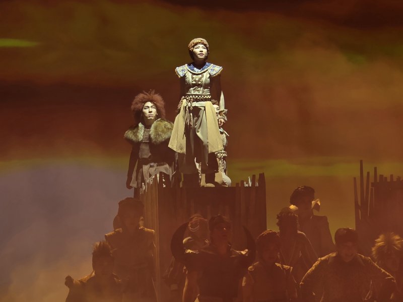무대는 와니니의 시선과 초원의 위계를 반영해 3층 구조로 설계됐다. 지도자 마디바가 상층부를 지키고, 추방된 와니니가 낮은 공간에서 생존을 배운다. 2층은 동물들의 관계가 교차하는 공간이다.
