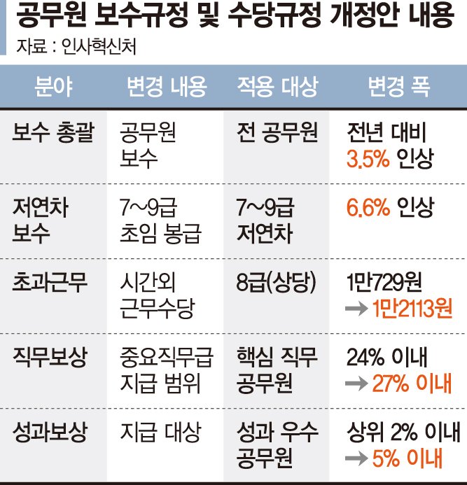 인사혁신처는 30일 이 같은 내용을 담은 공무원보수규정 및 공무원수당 등에 관한 규정 개정안이 국무회의를 통과했다고 밝혔다.
