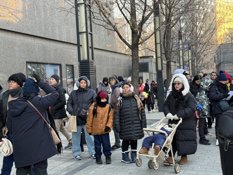 출근길 시민들은 옷깃을 여미며 종종걸음을 쳤지만, 이곳에 모인 외국인 관광객들의 모습은 전혀 딴판이었다. 대만, 싱가포르, 홍콩, 호주 등 눈이 내리지 않거나 한여름인 나라에서 온 이들은 하얀 입김을 뿜어내면서도 상기된 표정을 감추지 못했다.
