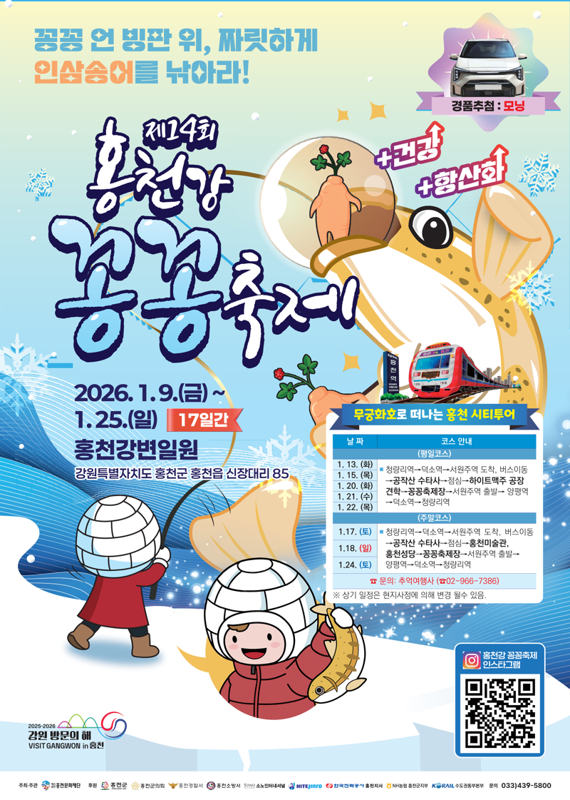 특히 겨울철 대표 축제인 홍천강 꽁꽁축제와 연계해 계절 관광자원과 지역 축제를 결합한 체류형 관광 프로그램으로 구성, 축제 현장에 활력을 더하고 지역 인지도 향상에도 기여할 것으로 기대된다.