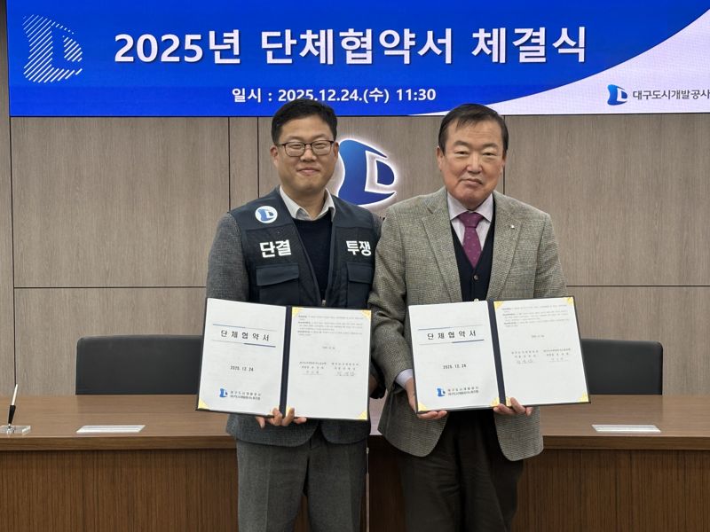 【파이낸셜뉴스 대구=김장욱 기자】대구도시개발공사 노사는 지난 24일 분규 없이 단체협약을 체결했다고 12월 31일 밝혔다.