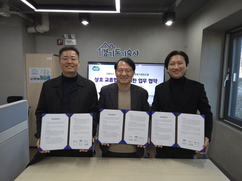 이날 협약식에는 배경민 디에리스 대표와 경기도기숙사 위탁법인인 희망둥지협동조합 문상철 이사장, 조도연 경기도기숙사 관장이 참석했으며, 행사는 기숙사 소개 후 협약 체결을 진행하고 기숙사 시설 전반을 둘러보는 순으로 진행됐다.
