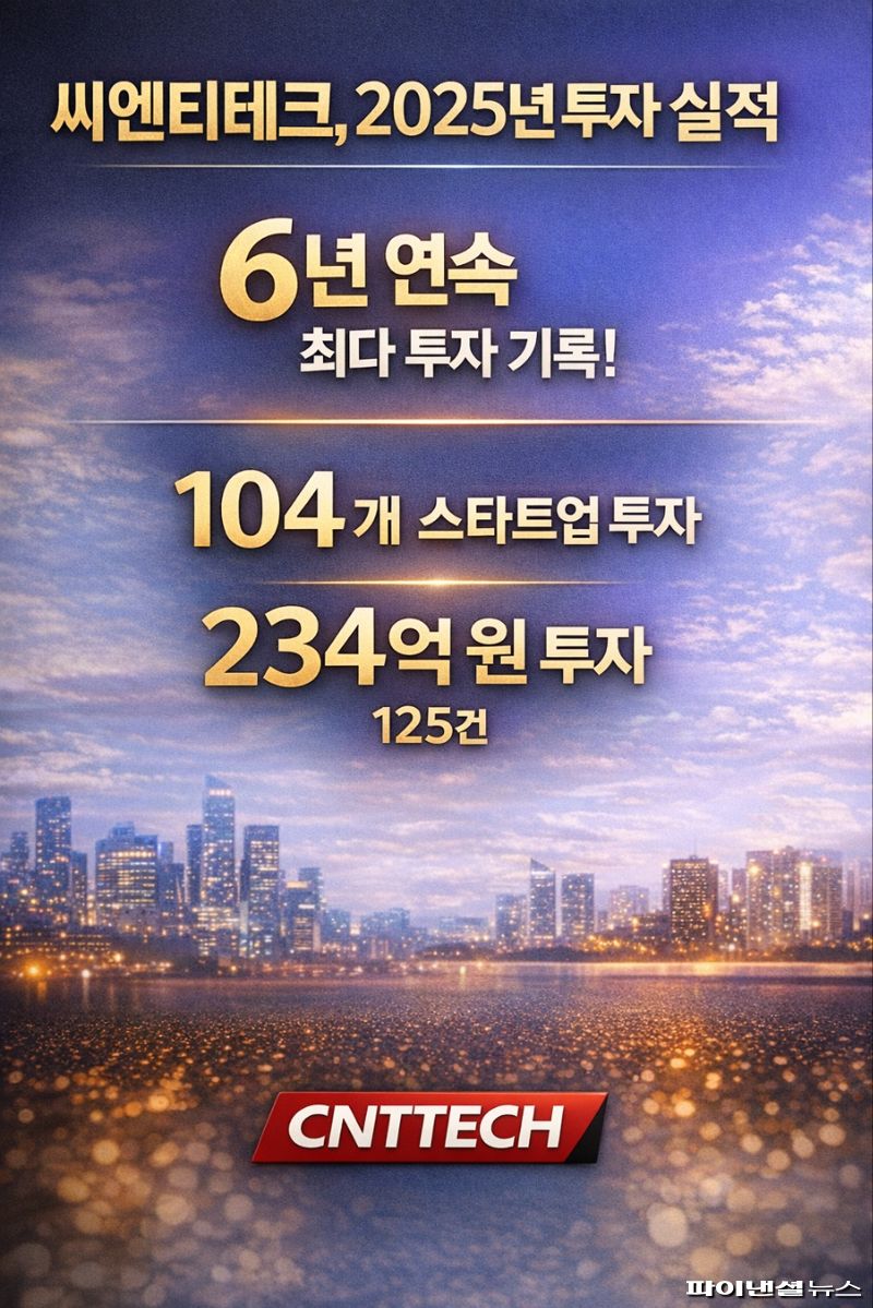씨엔티테크는 2025년 한 해 동안 총 104개 스타트업에 125건, 약 234억원 규모의 투자를 집행했다고 31일 밝혔다. 이는 과거 투자 성과의 누적 효과를 제외하고 2025년 단일 연도 내 실제 집행된 투자만을 기준으로 산출한 실적이다. 투자 심리가 위축된 환경에서도 신규 투자 규모와 투자 기업 수 모두에서 업계 최고 수준을 유지했다.