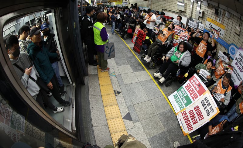 전장연의 지하철 시위로 1호선 운행 차질 발생