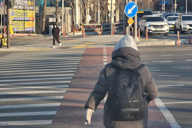 횡단보도를 건너는 시민들 역시 방한용품으로 단단히 무장했다. 두꺼운 패딩 점퍼에 모자를 눌러쓰고, 목도리와 장갑, 귀마개까지 착용한 채 빠르게 걸음을 옮겼다. 강풍에 얼굴을 찡그린 채 종종걸음을 치는 시민들이 대부분이었다.