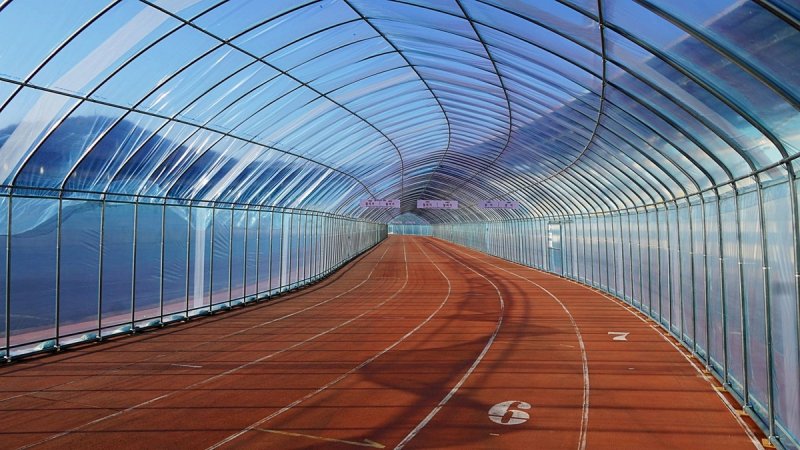 비닐 트랙은 400m 트랙 1∼6레인에 걸쳐 비닐하우스 형태로 설치됐다.