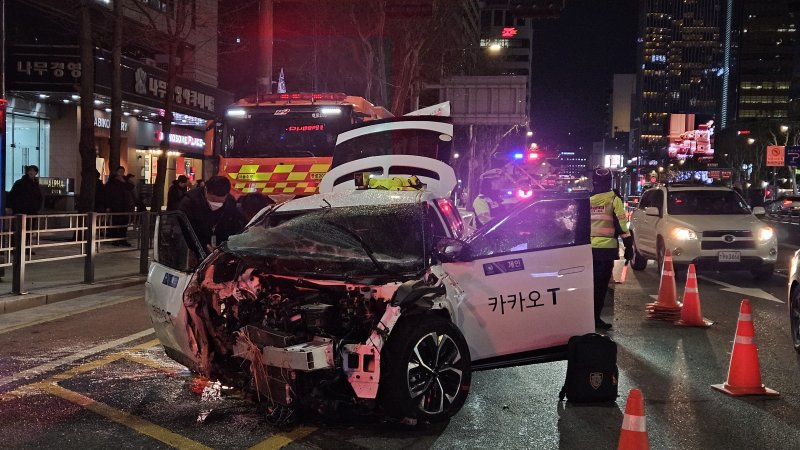 사고 당시 건너편에 있던 30대 여성은 "유난히 '펑' 소리가 크게 나 돌아볼 정도였다"며 "차량에서 연기가 나고 범퍼가 가드레일을 치고 인도까지 넘어올 정도였다. 택시 뒷좌석에 있던 분이 구조되는 것을 봤다"고 전했다.