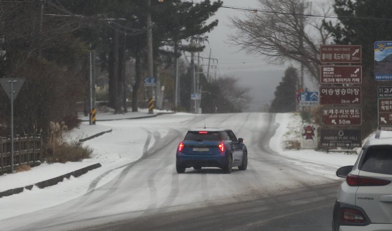 오전까지 예상 적설량은 산지 3~10㎝, 중산간 1~5㎝, 해안 1~3㎝ 등이다. 남부를 제외한 전역에서 초속 20m 이상의 매우 강한 바람이 불 것으로 예상됐다.