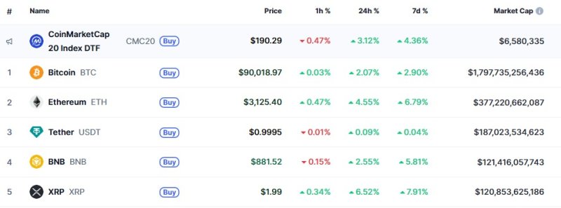 3일 오전 5시 현재 글로벌 코인 시황 중계사이트 코인마켓캡에서 비트코인은 24시간 전보다 2.07% 상승한 9만18달러를 기록하고 있다. 비트코인이 9만달러를 재돌파한 것은 지난해 12월 13일 이후 처음이다.