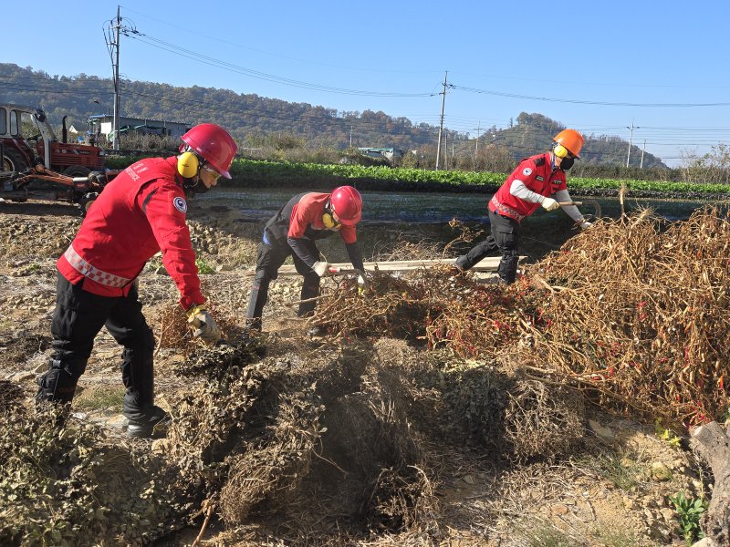 이번 작업은 농가에서 발생하는 고추·깻대 등 영농폐기물을 단순 소각하지 않고 파쇄해 퇴비로 재활용할 수 있도록 지원하는 방식으로 진행된다.