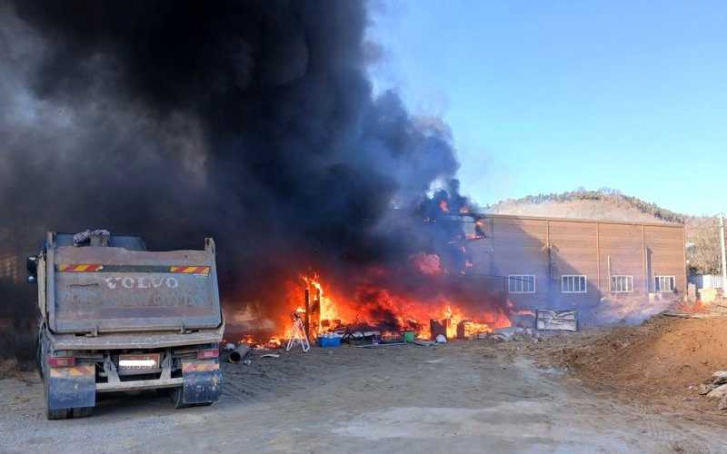 [칠곡=뉴시스]송종욱 기자 = 2일 낮 12시51분께 경북 칠곡군 기산면 한 창고에서 불이 나 1시간여 만에 진화됐다.